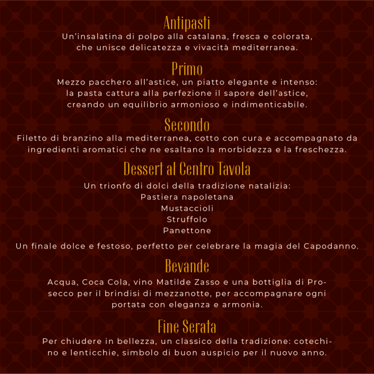 Prenota ora e assicurati una serata di Capodanno all’insegna del gusto, musica e magia festiva! 🎉